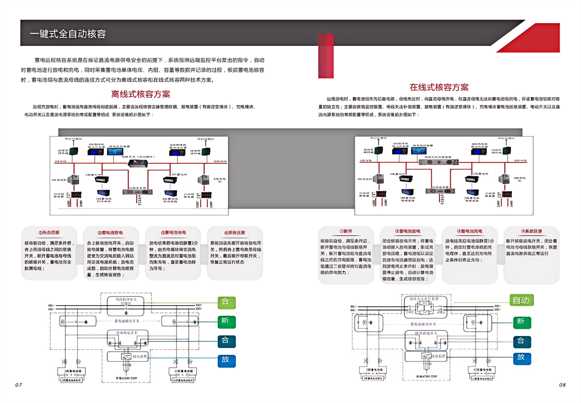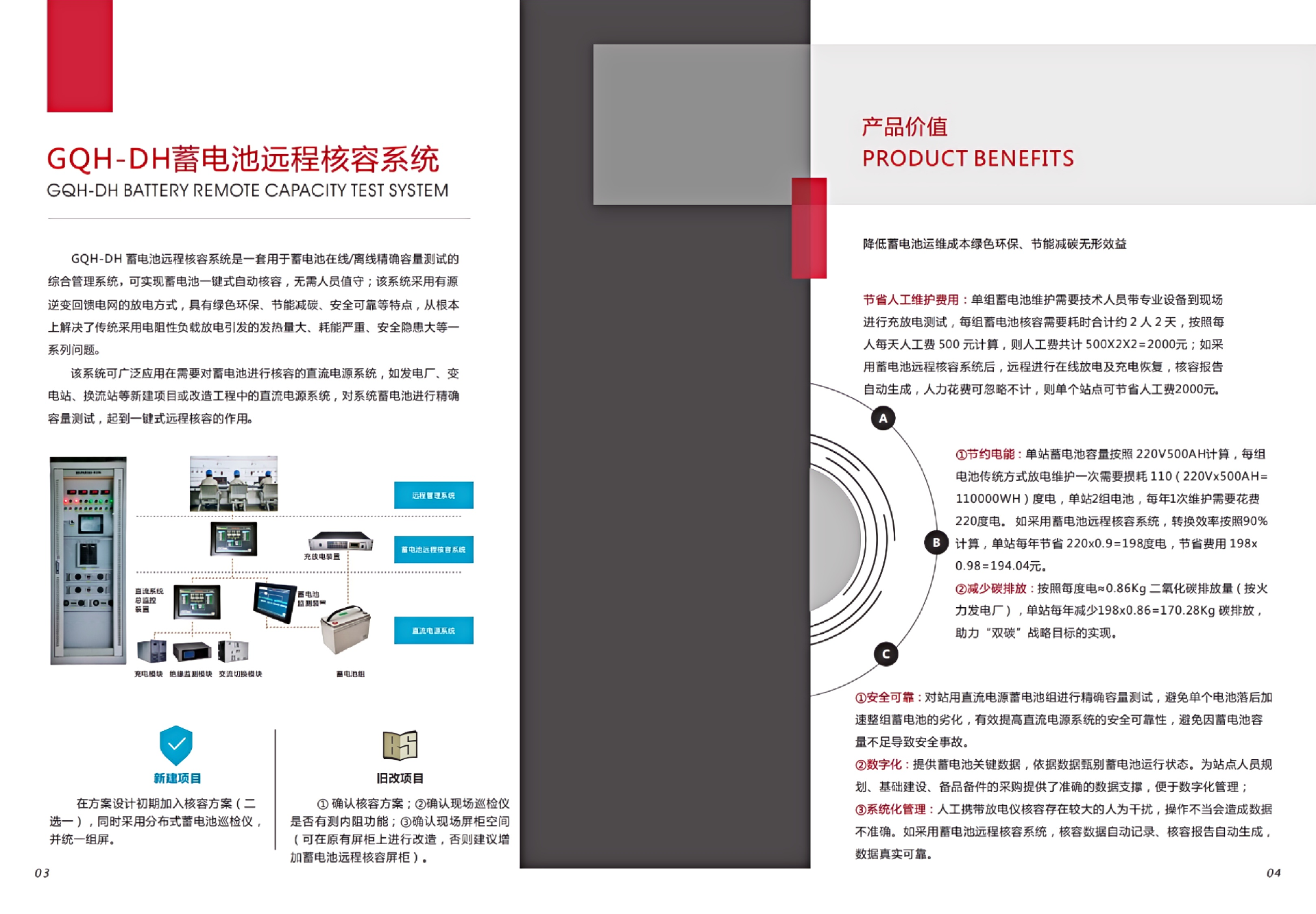 GQH-DH 蓄电池远程核容系统是一套用于蓄电池在线/离线精确容量测试的综合管理系统,可实现蓄电池一键式自动核容,无需人员值守。 该系统采用有源逆变回馈电网的放电方式,具有绿色环保、节能减碳、安全可靠等特点,从根本上解决了传统采用电阻性负载放电引发的发热量大、耗能严重、安全隐患大等一系列问题。 该系统可广泛应用在需要对蓄电池进行核容的直流电源系统,如发电厂、变电站、换流站等新建项目或改造工程中的直流电源系统,对系统蓄电池进行精确容量测试,起到一键式远程核容的作用。